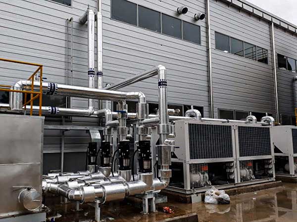 Hạng mục thi công: Cung cấp hệ thống máy làm lạnh nước nguyên cụm, thiết bị bơm nước đồng bộ, vật tư và nhân công lắp đặt – hoàn thiện toàn bộ hệ thống đường ống công nghệ đến thiết bị sản xuất.